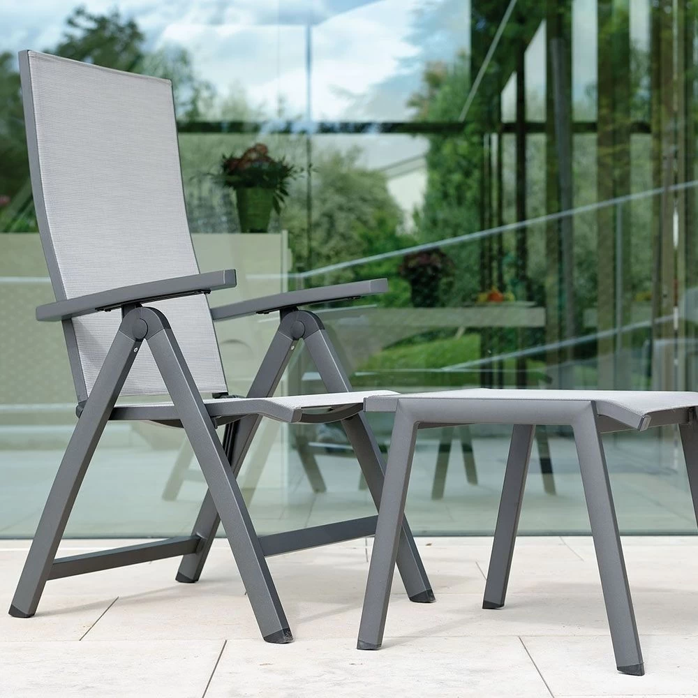 Stern Klappsessel New Top Aluminium anthrazit mit Bezug Textilen silber und Aluminiumarmlehnen anthrazit