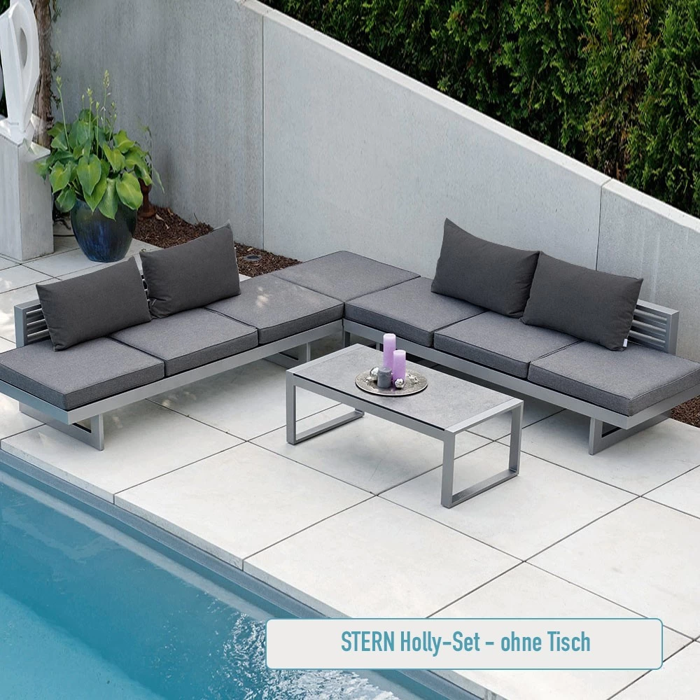 2x Stern NEW HOLLY Bank/Liege Aluminium graphit mit Auflage schiefergrau aus 100 % Polyacryl