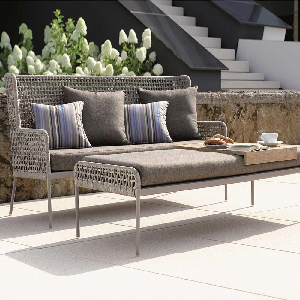 Stern Lounge-Sofa Greta Aluminium champagner mit Kordel ecru/Kissen 100% Polyacryl Dessin rehbraun