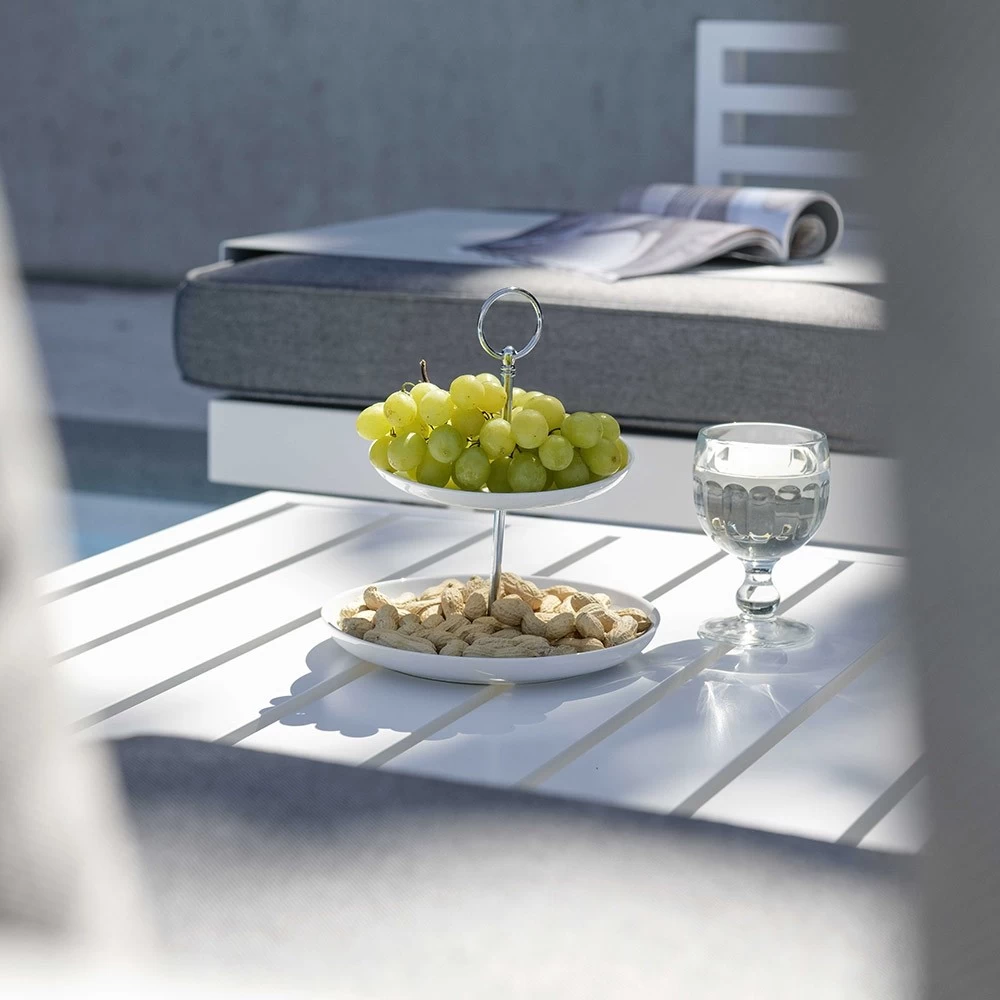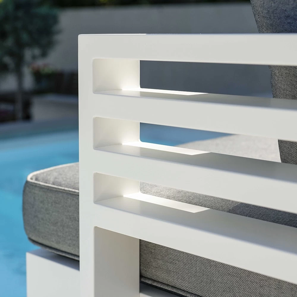 Stern NEW HOLLY DINING Bank/Liege Alu Weiß Mit Textilen Silber Und Auflage Seidengrau