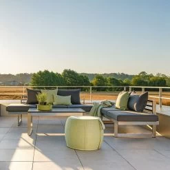 | Material Ober-/Tisch-/Sitz-/Liegefläche | Outdoorstoff (100% Polyacryl, PU-Beschichtung auf Unterseite) |