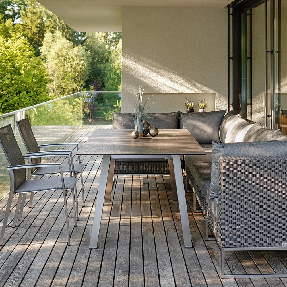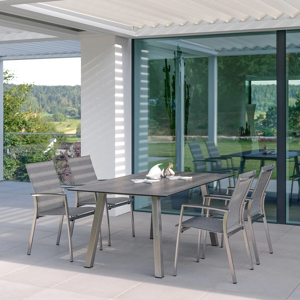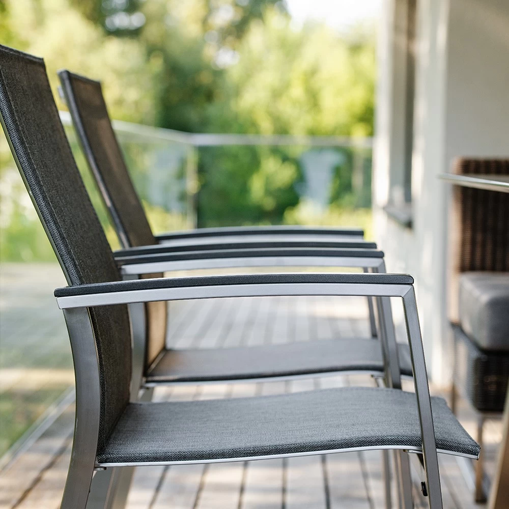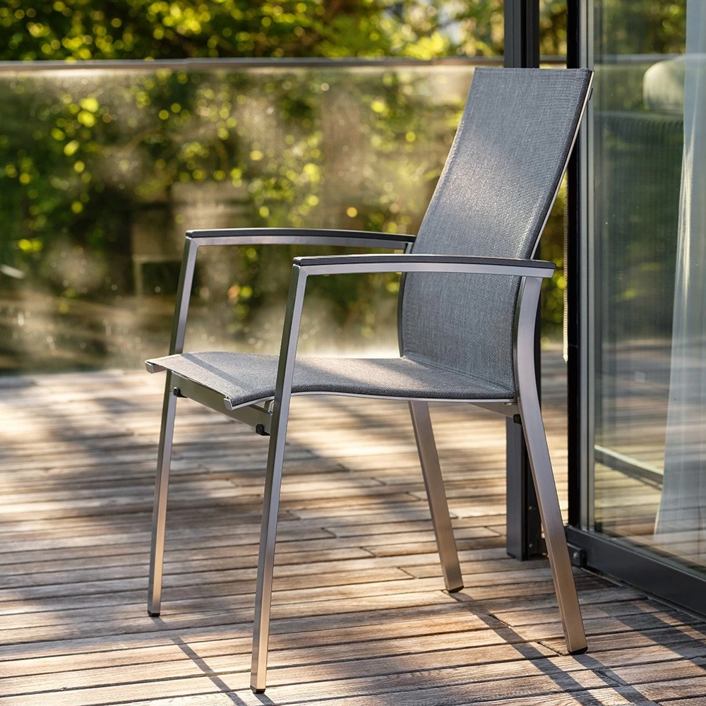 1x Stern Stapelsessel Mika Edelstahl/Bezug Textilen Leinen grau/Aluminiumarmlehnen anthrazit