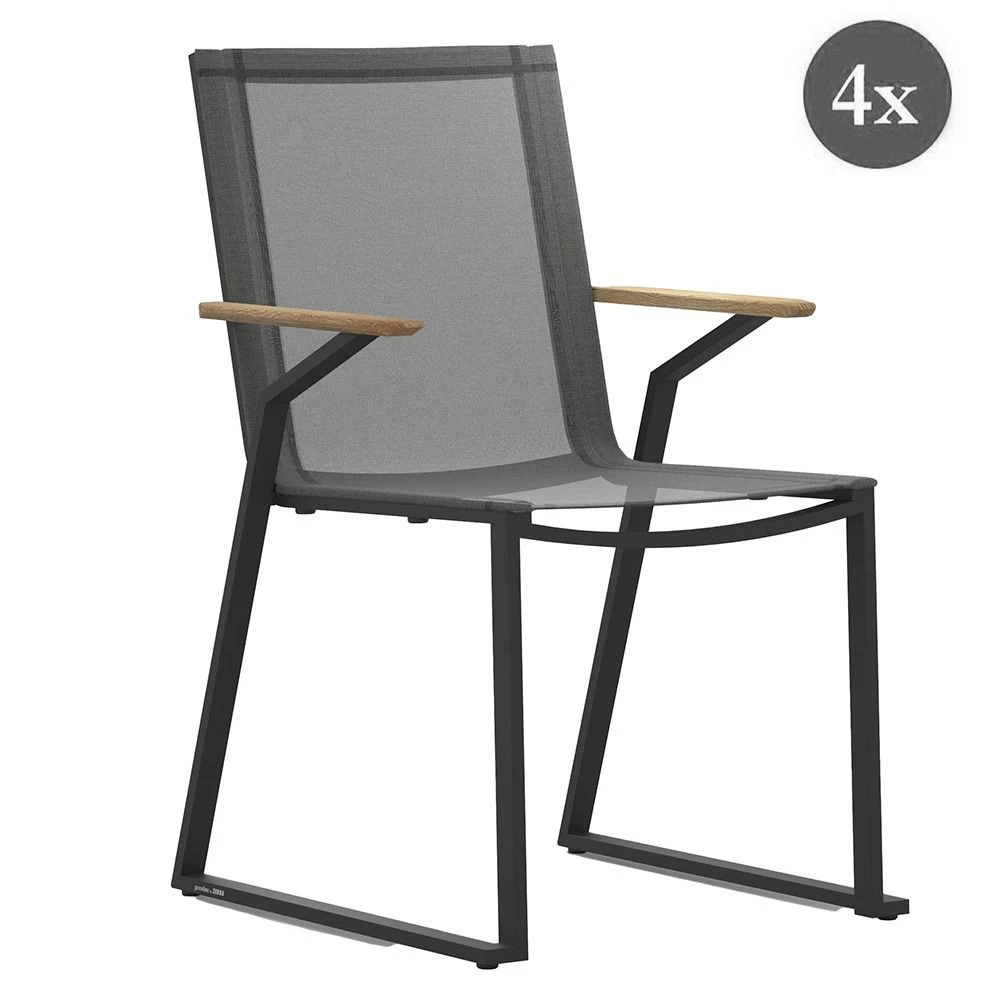 | 4x Zebra Tamax Stapelsessel Aluminium pulverbeschichtet graphite, AL recyceltes Teak, Batyline-Eden-Textilen midnight grey |