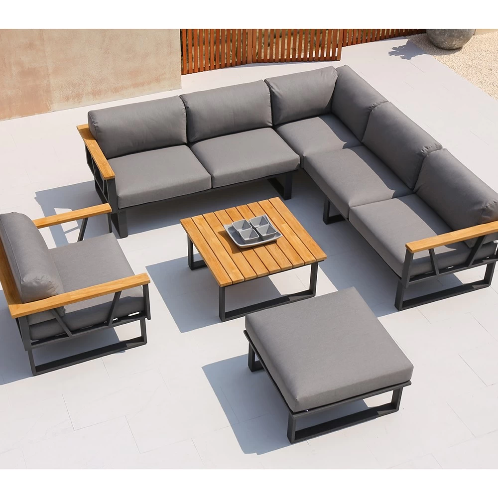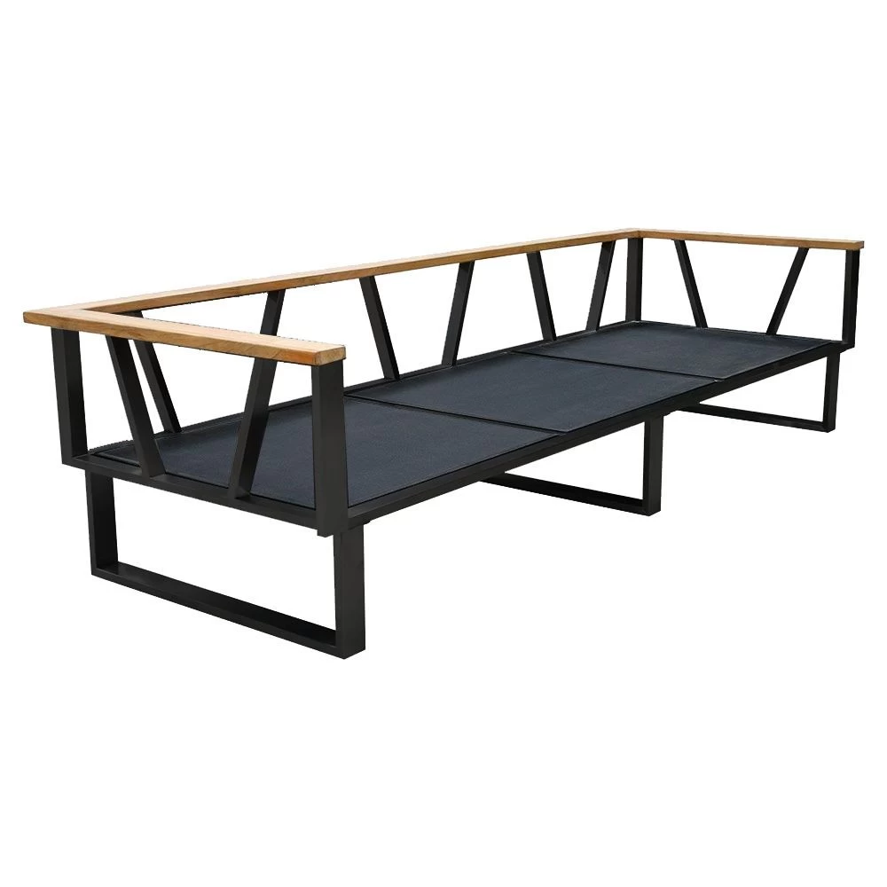 Zebra Belvedere Rahmen 2-Sitzer AL links Gestell Edelstahl graphite, Teakarmlehne links (ohne Polster), Batyline Sitzbespannung