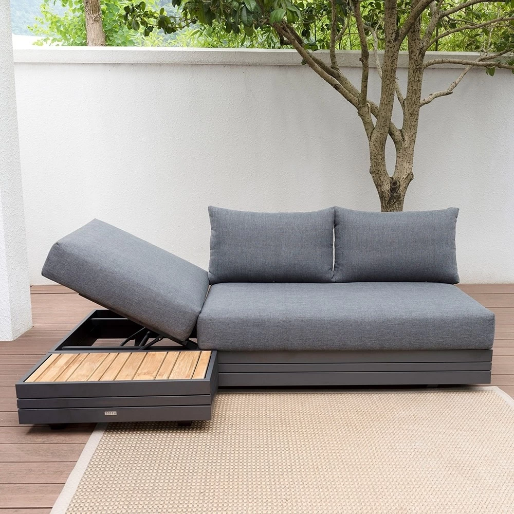 Das verwendete Teakholz harmoniert hervorragend mit dem Gestell aus Aluminium und versprüht einen natürlichen Charme. Teak ist überaus robust und wird deshalb sehr gerne in der Gärtenmöbelbranche eingesetzt.