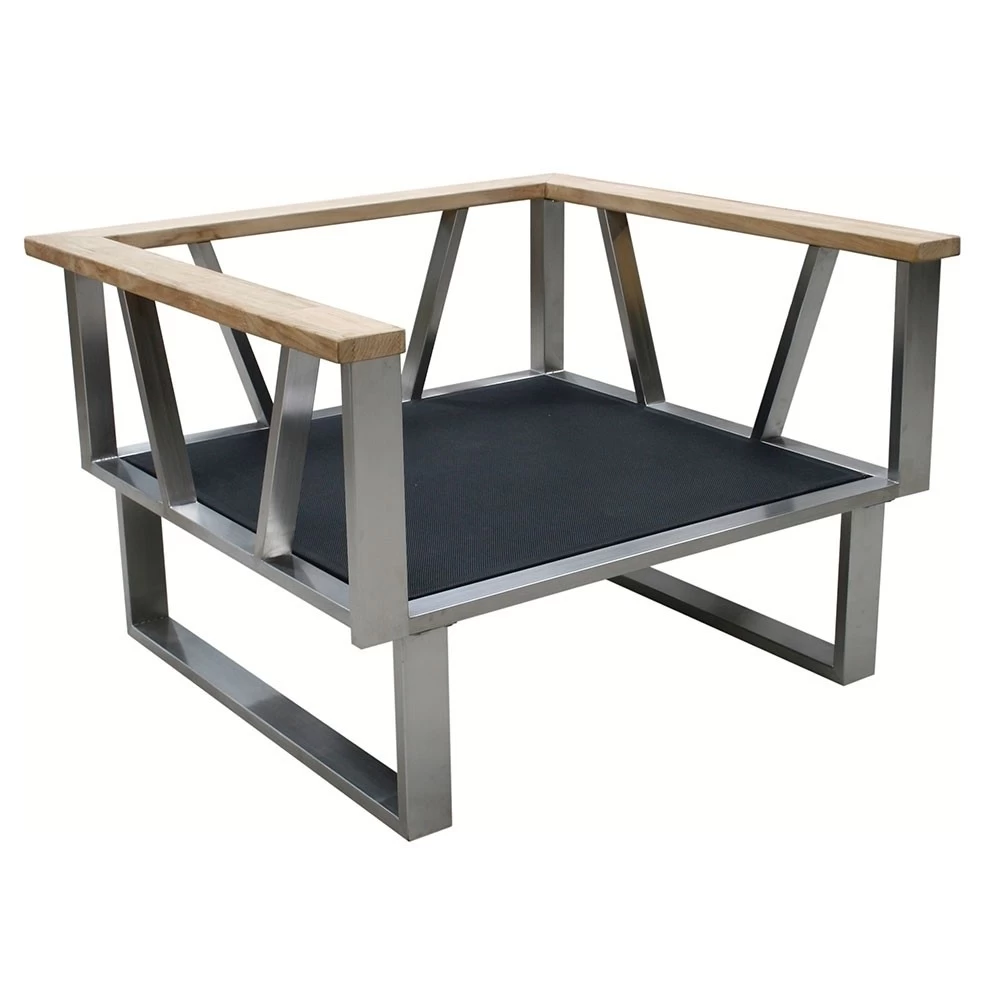 Die erstklassige Zusammensetzung der Materialien, macht BELVEDERE zu einem absoluten Top-Produkt. Für das Gestell wurde Edelstahl 304 ausgesucht. Dieses ist, dank der chemischen Zusammensetzung, besonders beständig gegenüber den äußerlichen Witterungsverhältnissen. Bei den Armlehnen und der Rückenlehne wurde das robuste und markante Teakholz eingesetzt, welches eine herrliche Symbiose mit dem Edelstahl eingeht. Das wetterfeste Hartholz erzeugt bei jedem Gartenmöbelstück einen einzigartigen Charakter. Im Laufe der Zeit bildet sich eine silbergraue Patina, falls dies nicht gewünscht ist, müssen Sie ihre Möbel einmal im Jahr, mit einer entsprechenden Lasur behandeln.