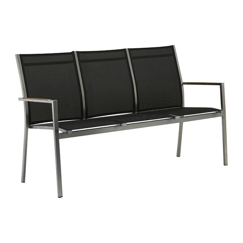 Zebra One Bank Dark Platinum Edelstahl, Hochw. Textilen, Teakarmlehnen (eingelassen), Stapelbar