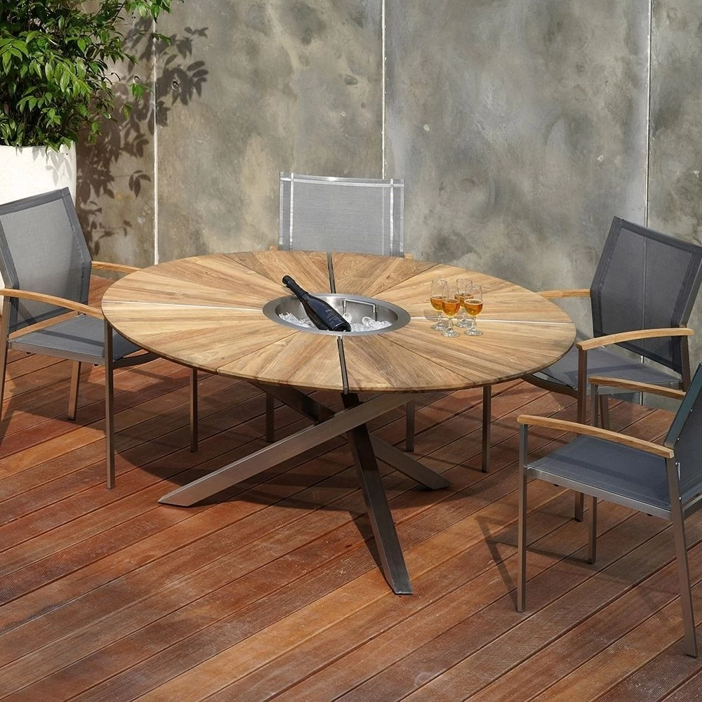 Zebra SETAX SWING Sessel aus Edelstahl, Batyline eden und Teakarmlehnen, extra hohe Rückenlehne