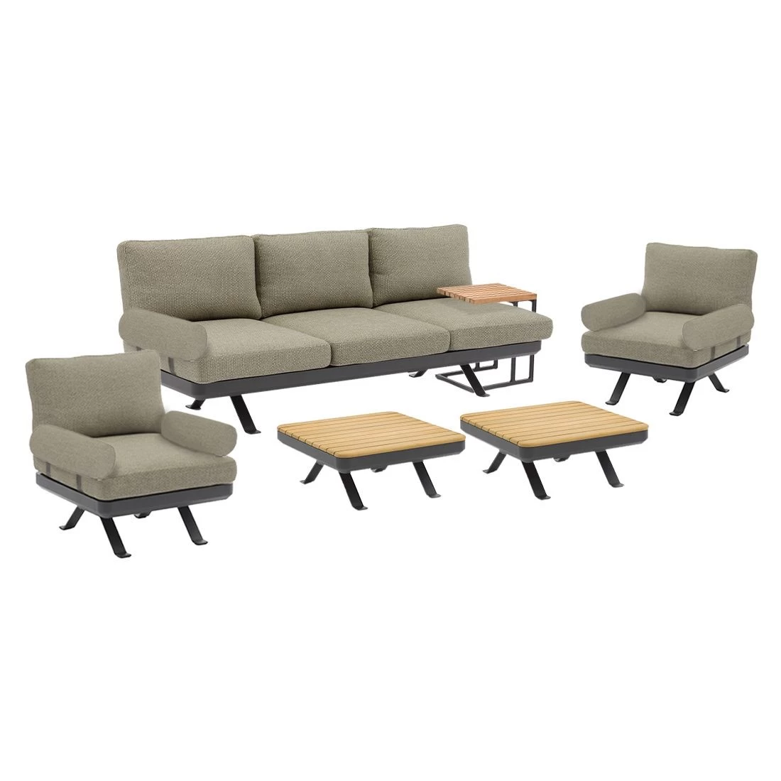 Zebra Sky Lounge 3-Sitzer Set Camden Grey, 2x Lounge Sessel Mit 2x Lounge Tisch Platte Teak Und FLY Beistelltisch Teak Platte